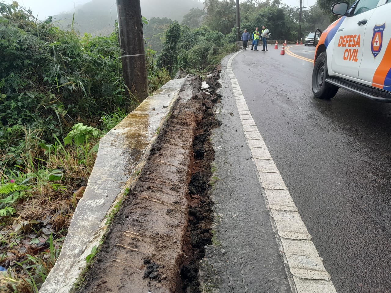 No momento, o trânsito no local é feito pelo sistema Pare e Siga enquanto equipes do Departamento de Estradas de Rodagem (DER), do governo do Estado, avaliam o que será possível fazer em termos de contenção para evitar um escorregamento maior de terra e do leito carroçável no trecho de quase 50 metros..