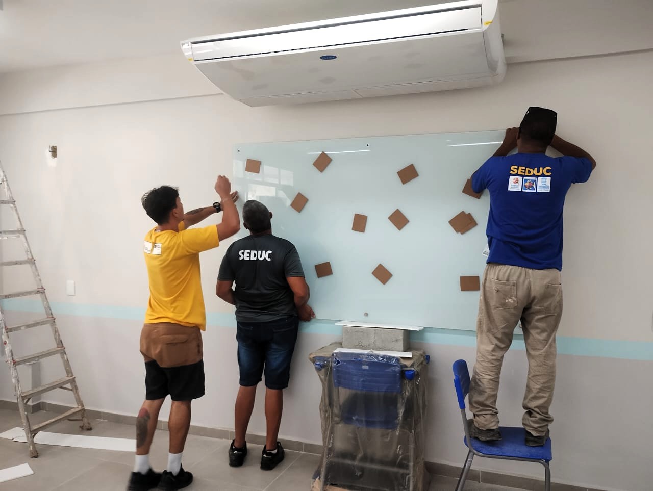 Ao todo, foram mais de 90 serviços executados, entre eles, a instalação de ventiladores em salas de aula, troca de registros e maçanetas, colocação de calhas em telhados, instalação de lousas, pintura, limpezas preventivas, além de outras atividades. Essas intervenções ocorreram em diversas escolas e creches, de Costa Sul a Costa Norte do município.