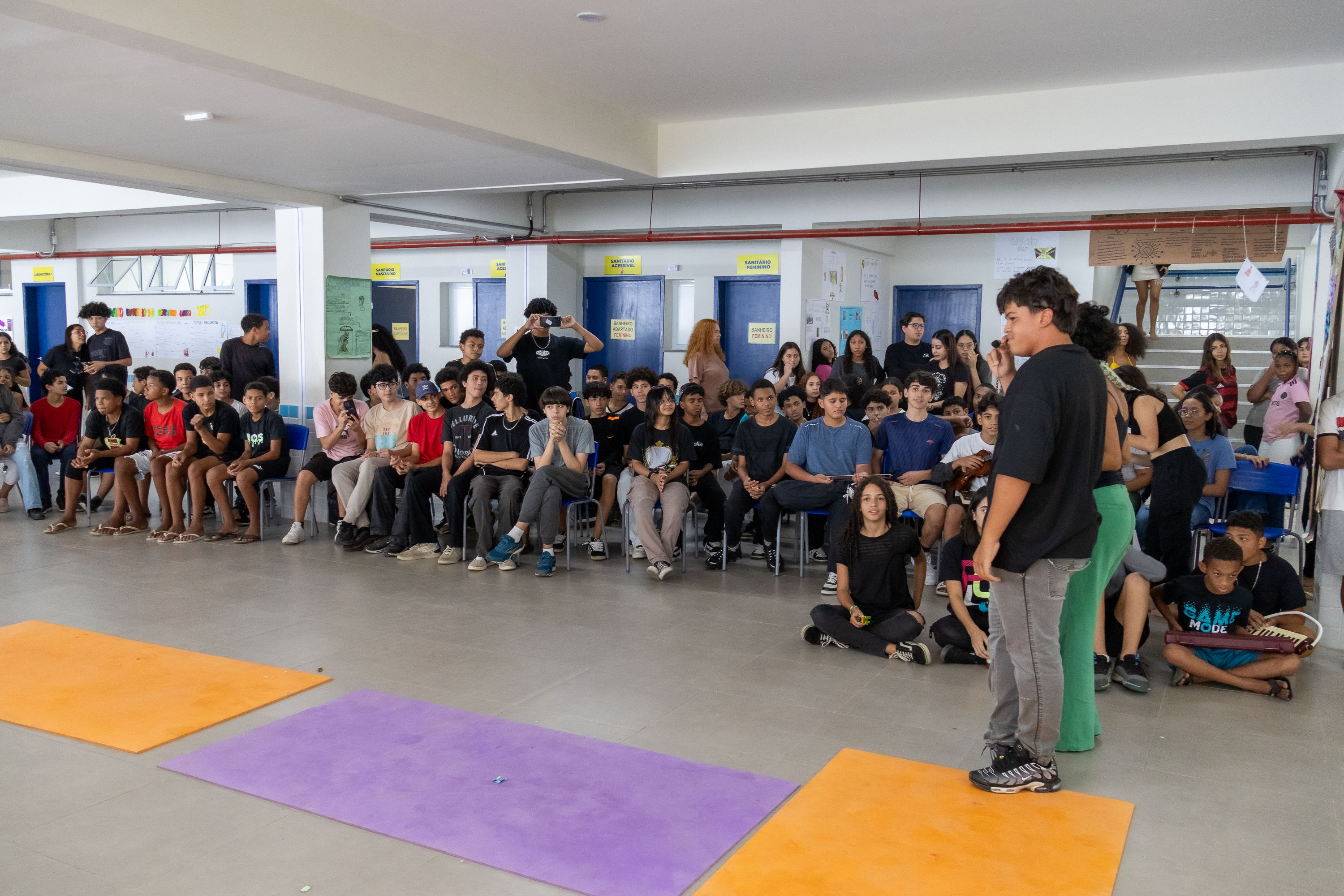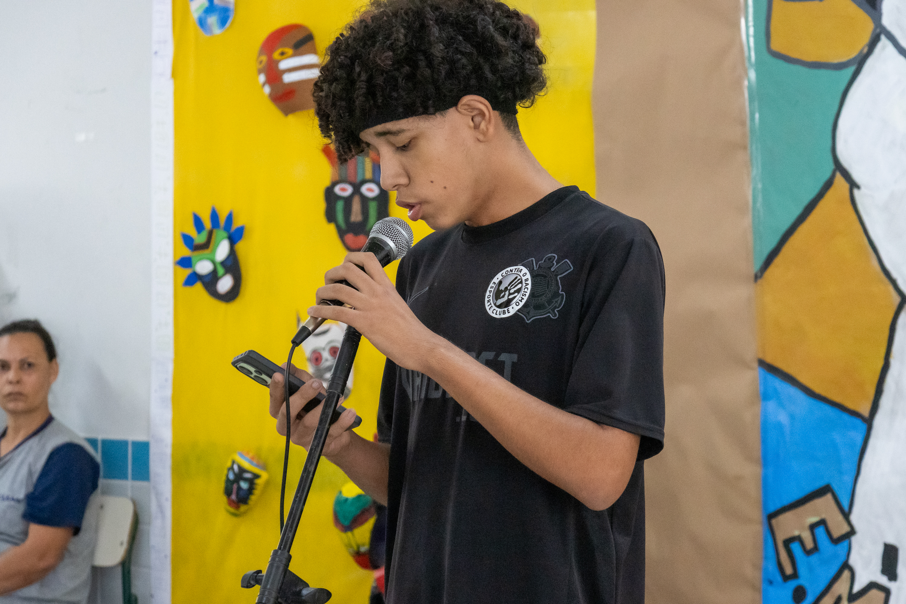 O destaque ficou para o primeiro Slam da escola, um campeonato de poesia autoral protagonizado pelos alunos. O evento proporcionou um verdadeiro mergulho na diversidade, na expressão e no talento que florescem no ambiente escolar.