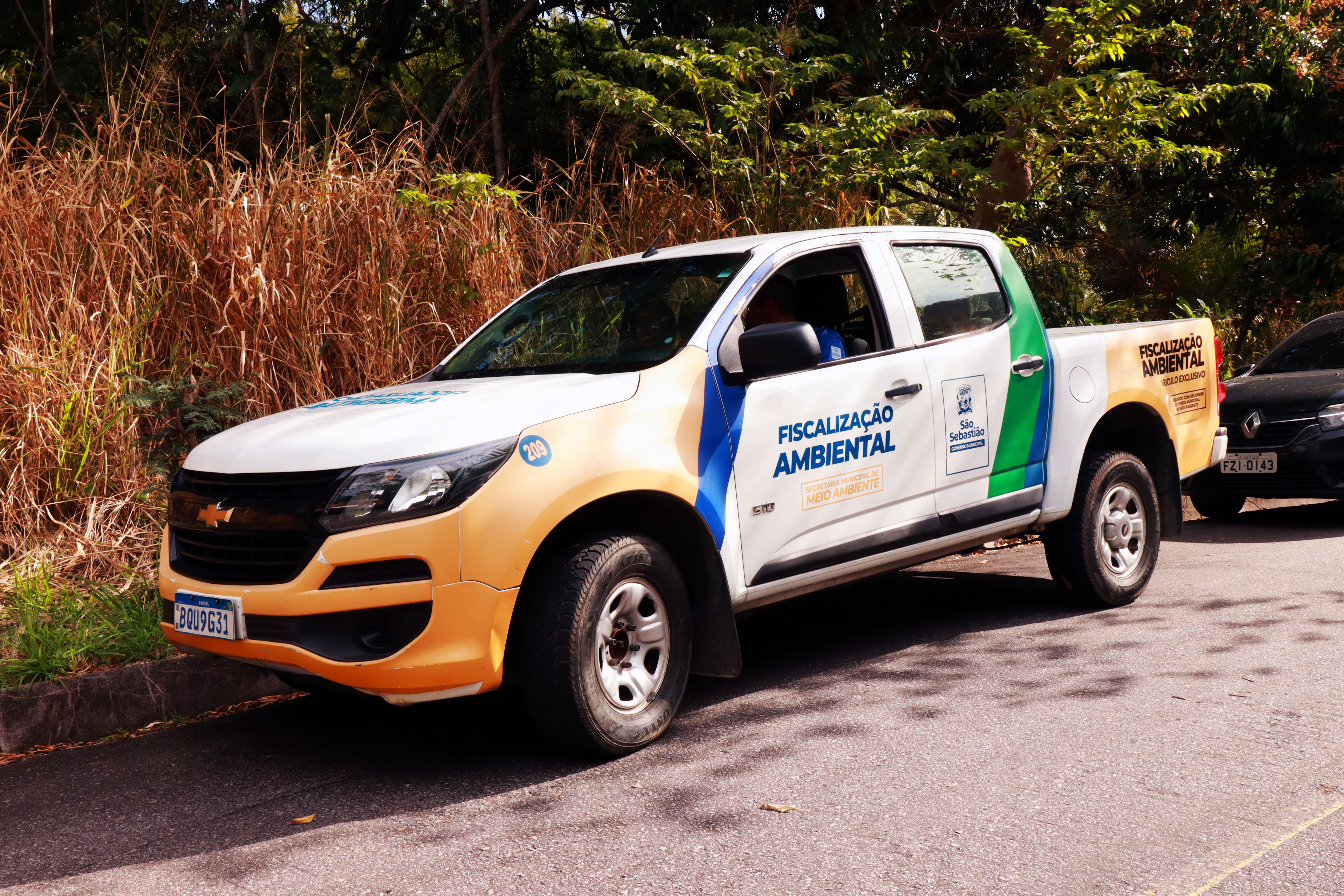 #PraTodosVerem: Equipes da Prefeitura de São Sebastião participaram de uma operação contra uma possível tentativa de grilagem, com o apoio da Polícia Civil e da Polícia Municipal, além da atuação das equipes de fiscalização da Secretaria de Meio Ambiente e Urbanismo. As imagens mostram agentes de segurança acompanhando a ação, veículos oficiais de fiscalização ambiental, maquinário e caminhões utilizados no trabalho, reforçando a integração entre os órgãos para coibir ocupações irregulares e garantir a proteção do território. Fim da descrição.
