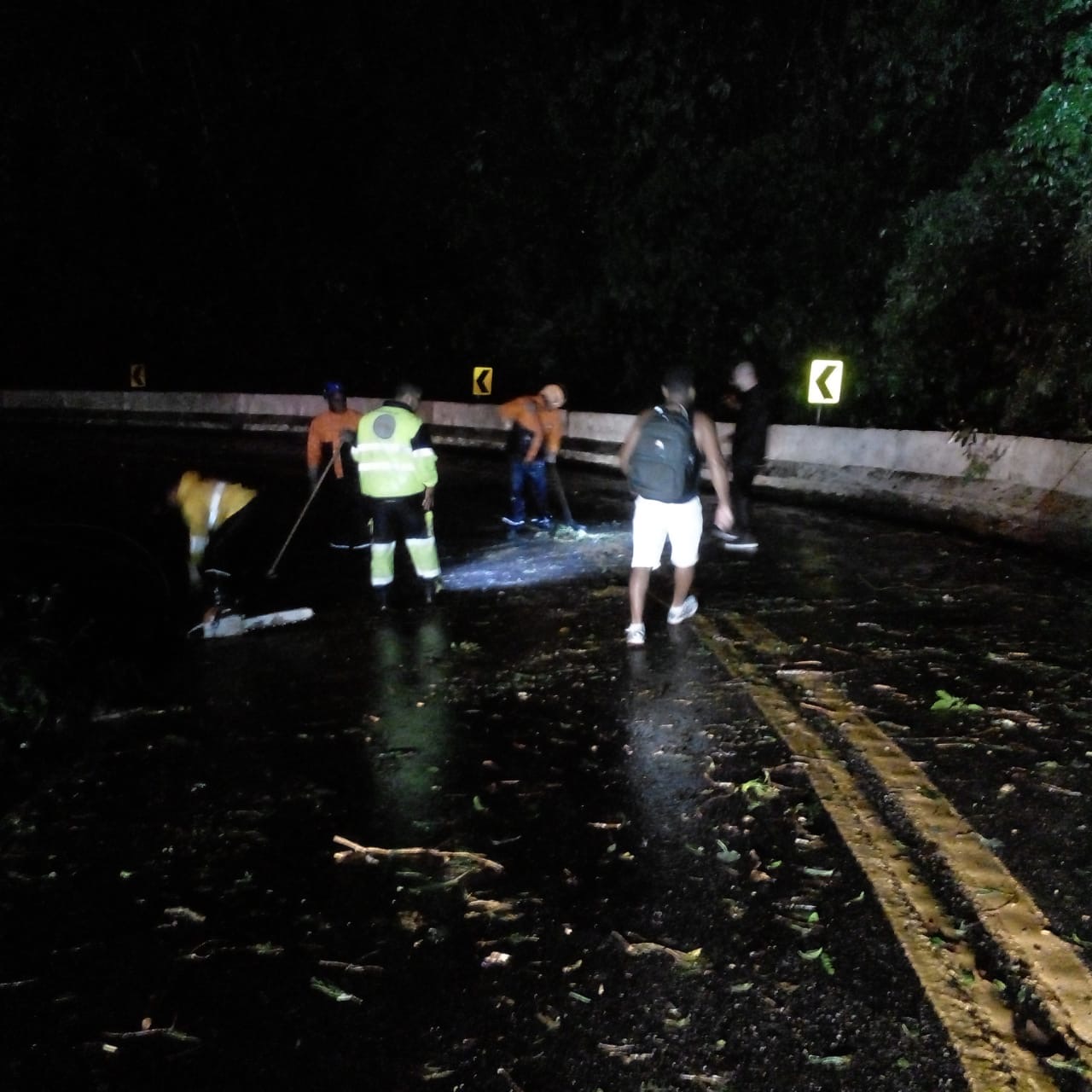 Na serra entre Maresias e Boiçucanga, no km 159 da Rodovia SP-55, uma árvore de grande porte caiu e bloqueou totalmente a pista. O Departamento de Estradas de Rodagem (DER) e a Defesa Civil foram acionados, e o tráfego foi liberado por volta das 22h. Também foram registradas quedas de árvores em outros pontos da cidade, como nos bairros de Boiçucanga e Cambury.