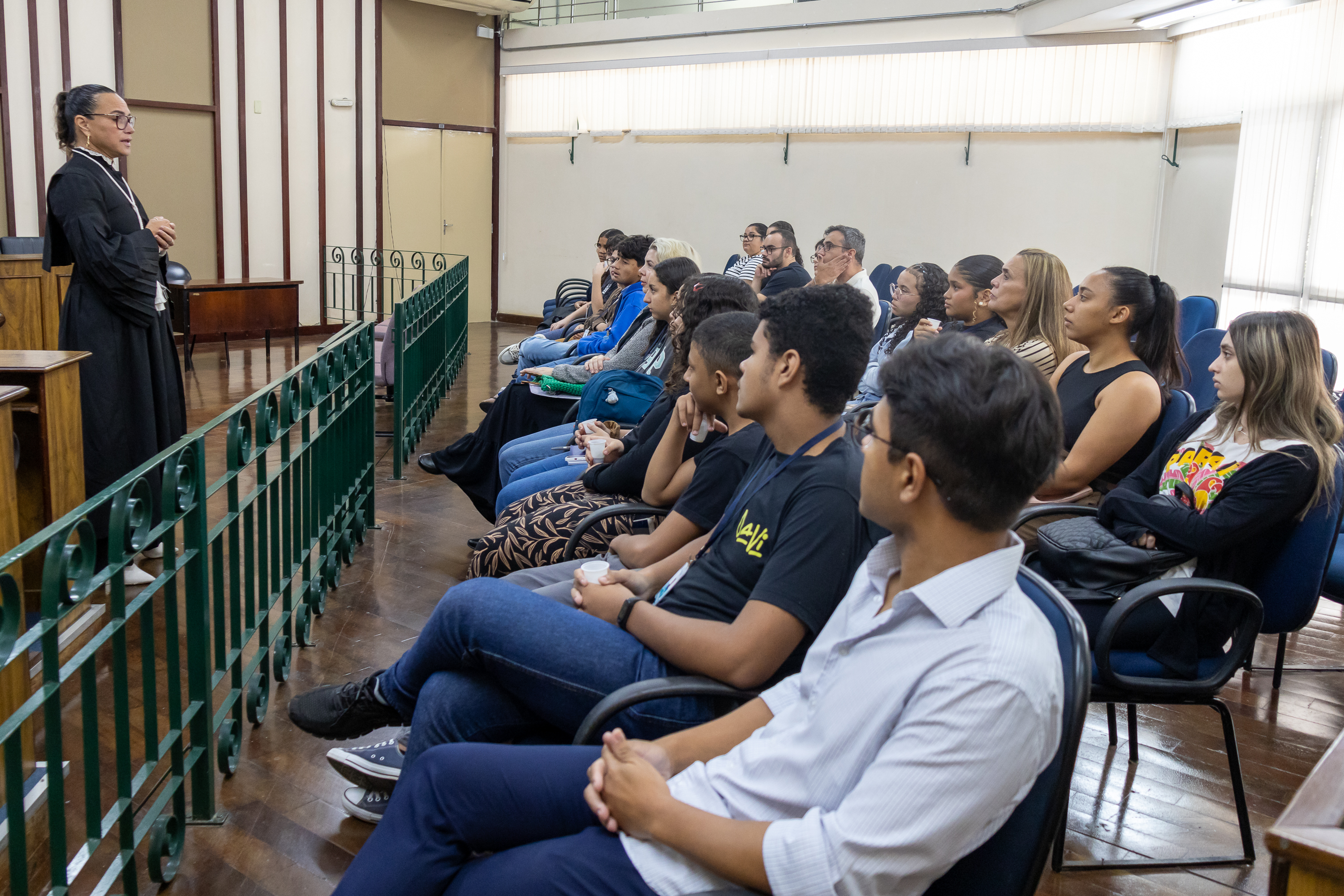 A programação seguiu com visitas ao Ministério Público e à Defensoria Pública, órgãos fundamentais para a garantia dos direitos constitucionais da população. Durante os encontros, os estudantes conversaram com promotores e defensores públicos, que explicaram a atuação de cada instituição na proteção dos direitos individuais e coletivos.
