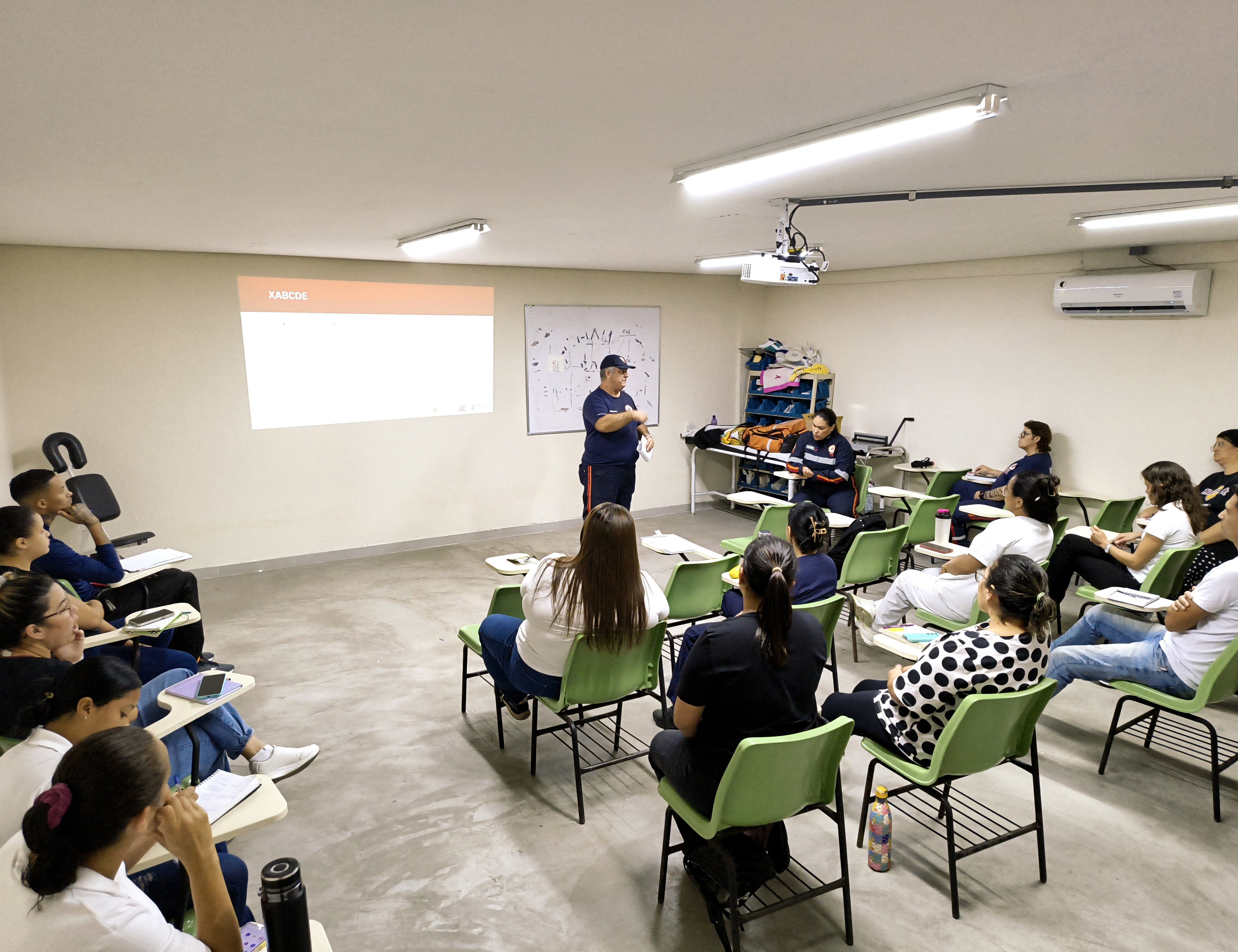 De acordo com o SAMU, a capacitação aborda conteúdos como protocolo M.O.V.E., incluindo estado de choque, fisiopatologia e tratamento, manejo de vias aéreas e suporte ventilatório, avaliação e conduta no atendimento ao trauma com protocolo XABCDE, parada cardiorrespiratória com suporte básico e avançado, além de emergências clínicas.