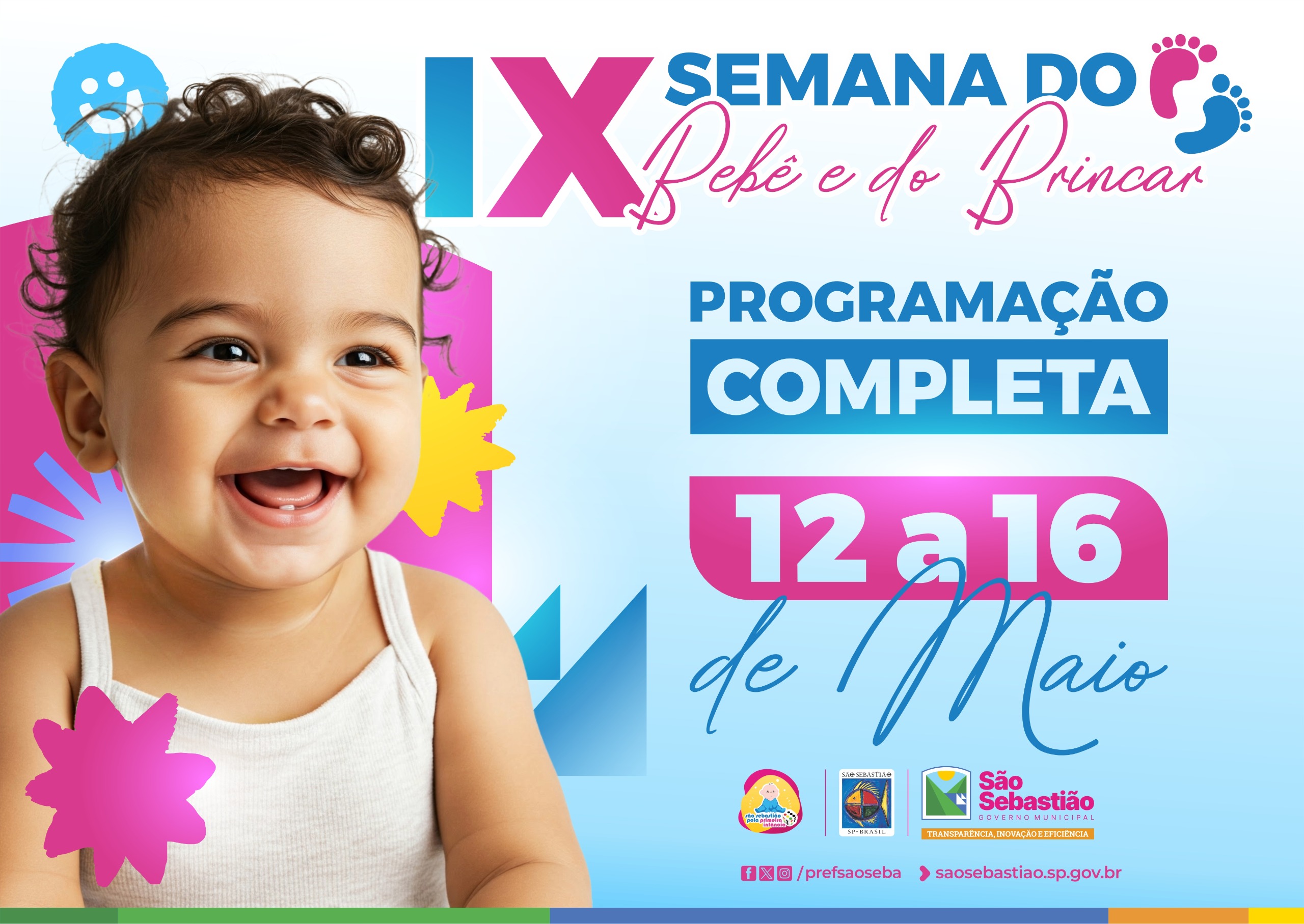A Prefeitura de São Sebastião, por meio das secretarias de Saúde (Sesau) e da Educação (Seduc), promove, entre os dias 12 e 16 de maio, a 9ª Semana do Bebê e do Brincar, realizada anualmente na terceira semana de maio. O tema deste ano é “Proteger o encantamento das crianças”.