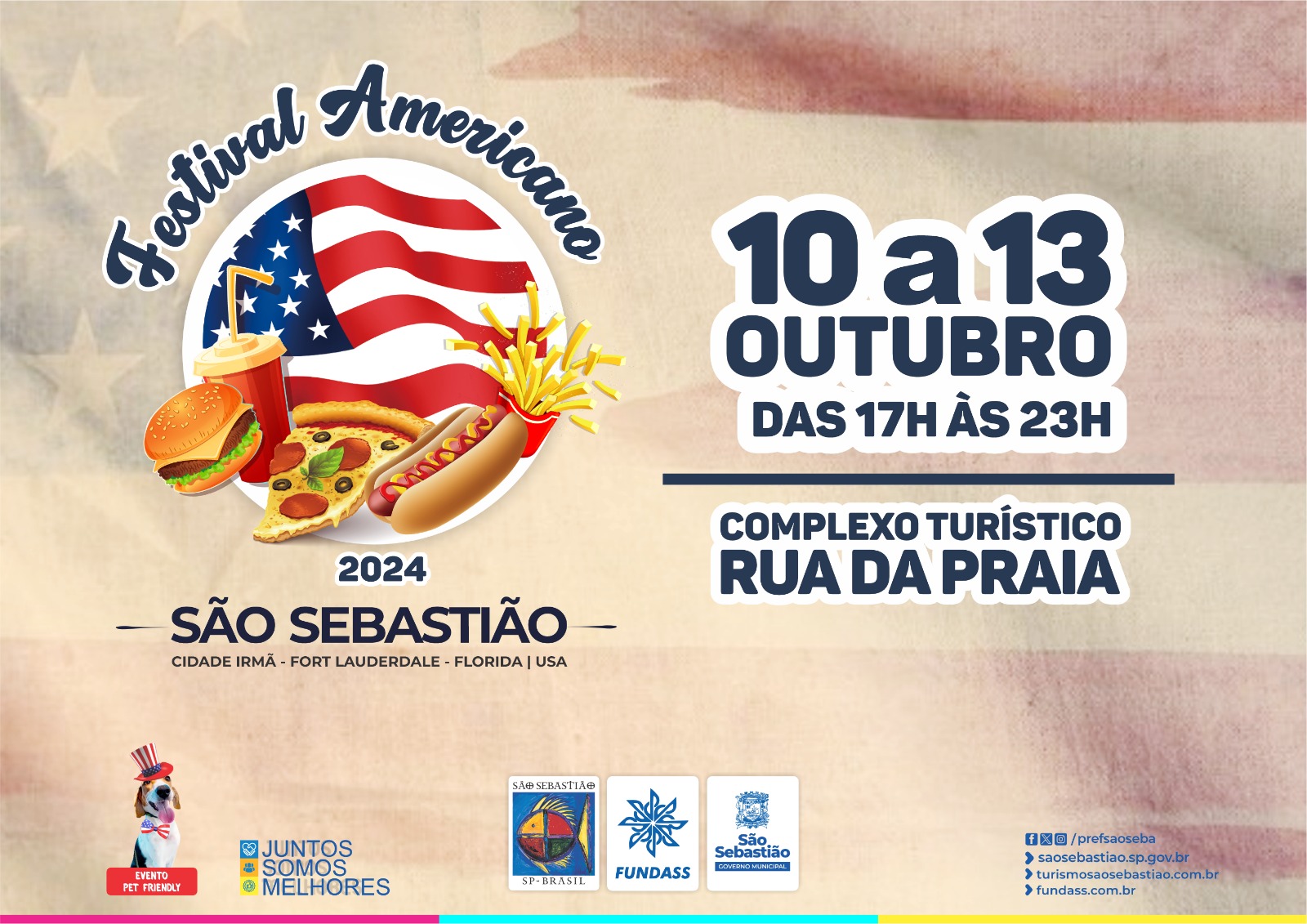 De 10 a 13 de outubro, a Prefeitura de São Sebastião, por meio da Secretaria de Turismo (SETUR) e da Fundação Educacional e Cultural ‘Deodato Sant’Anna’ (Fundass), realiza mais uma edição do Festival Americano no Complexo Turístico da Rua da Praia, no Centro Histórico.